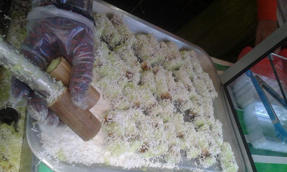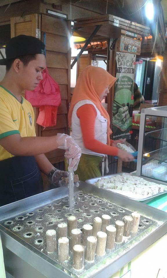 Putu Bambu is a rice cake cooked in a bamboo shell and sprinkled with coconut.