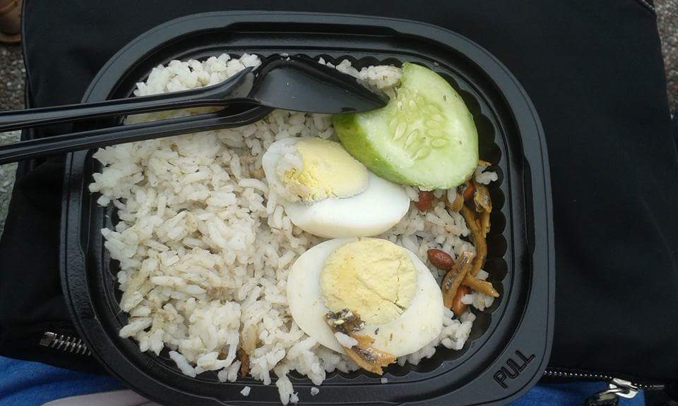 Considered as Malaysia’s national dish, Nasi Lemak is a very common Malaysian street food. A serving of rich Malay rice with peanuts, hard boiled egg, crispy anchovies and cucumber.