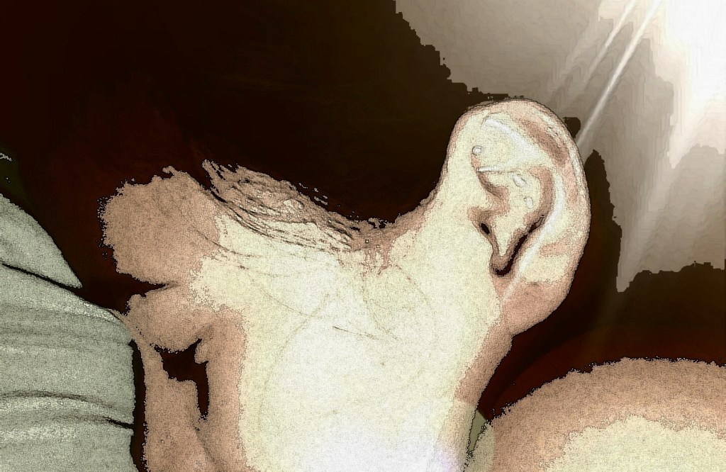 Ang kanang kamay ko ay nasa ulo. Ang kaliwa ay nasa tyan. Hinawakan ng babae ang kanang kamay ko at idiniin sa ulo ko. Kunwari ginigising niya ako, pero binulungan niya ako na matulog na daw ako ng tuluyan. Masakit sa tenga ang hangin na dala ng pagbulong niya. Tumatagos sa buong ulo ko, parang kayang lumabas sa kabilang tenga ko. Yung isang kamay niya ay dumidiin na din sa kanang tagiliran ko. Masakit, parang tumatagos sa katawan ko ang kamay niya. May kausap siya.