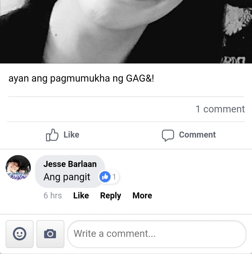 She went as far as posting my face. In this post, I covered my face with a pink heart. I chose to use a candid black-and-white photo with the queery smile as my display photo on social media. I find it naturally me and I have no insecurities. But she posted it and captioned it with a derogatory remark hidden in “ayan ang pagmumukha ng GAG&!” One of her friends even commented “ang pangit”.