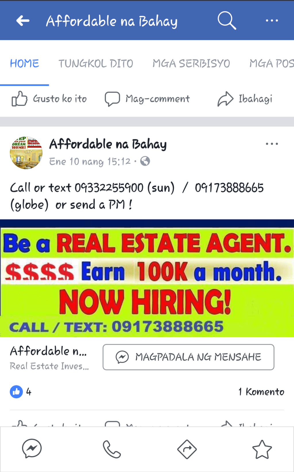 I first made an inquiry for a condominium unit, and I went to the site to see for myself. I liked the deal. But when I told my mother about it, she disagreed with my plans, worrying that the location is a direct spot for the fault line. I talked to the agent and courteously rejected the deal. The agent was cool and reminded me I could call him once I need help about houses. Then I found this one at